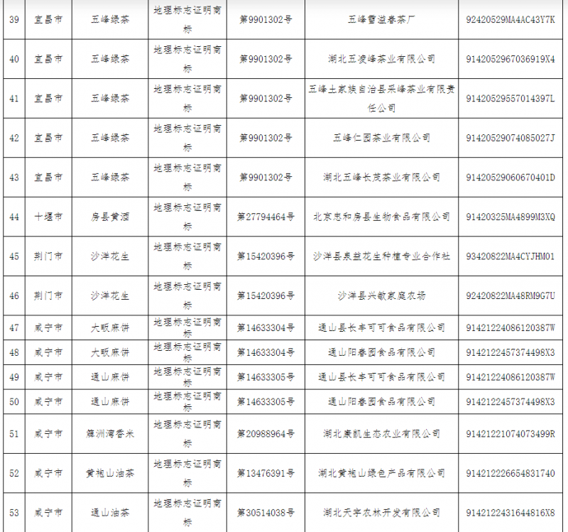 根據(jù)《地理標(biāo)志專用標(biāo)志使用管理辦法(試行)》和《國(guó)家知識(shí)產(chǎn)權(quán)局辦公室關(guān)于做好地理標(biāo)志專用標(biāo)志使用管理有關(guān)工作的通知》(國(guó)知辦函保字〔2020〕250號(hào))有關(guān)規(guī)定,經(jīng)國(guó)家知識(shí)產(chǎn)權(quán)局地理標(biāo)志保護(hù)數(shù)據(jù)管理系統(tǒng)核驗(yàn),省知識(shí)產(chǎn)權(quán)局對(duì)我省符合地理標(biāo)志專用標(biāo)志使用要求的“湖北盤龍國(guó)瑞醫(yī)藥有限公司”等2家地理標(biāo)志保護(hù)產(chǎn)品生產(chǎn)者和“武漢市蔡甸區(qū)萬(wàn)順農(nóng)產(chǎn)品專業(yè)合作社”等51家地理標(biāo)志證明商標(biāo)被許可人名單(見(jiàn)附件)予以公布,專用標(biāo)志下載口令以紙質(zhì)件形式統(tǒng)一下發(fā)至各市(州)知識(shí)產(chǎn)權(quán)局。