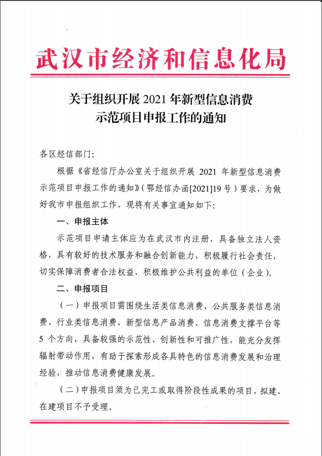 根據(jù)《市經(jīng)信局關(guān)于組織開展2021年新型信息消費示范項目申報工作的通知》要求,為做好我區(qū)申報組織工作,現(xiàn)將有關(guān)事宜通知如下: